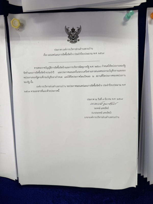 เรื่อง เผยแพร่แผบการจัดซื้อจัดจ้าง ประจำปีงประมาณ พ.ศ. ๒๕๖๙