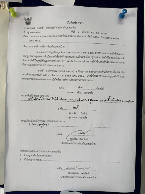 เรื่อง รายงานแบบสรุปผลการดำเนินงานจัดซื้อจัดจ้างในรอบเดือนกุมภาพันธ์ ๒๕๖๙ ปีงประมาณ ๒๕๖๙ (แบบ สขร.๑)