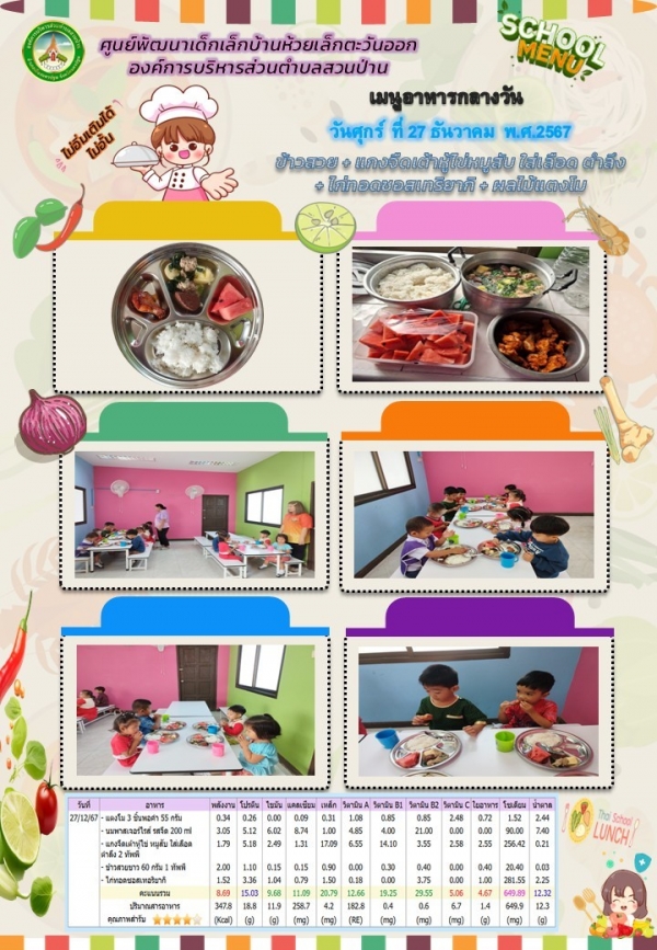 รายการอาหารกลางวันของศูนย์พัฒนาเด็กเล็ก (27/12/67)