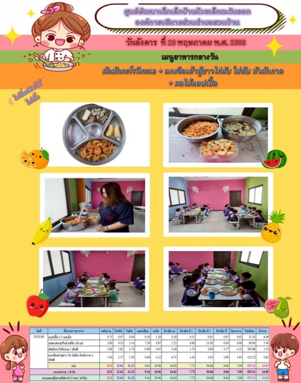 รายการอาหารกลางวันของศูนย์พัฒนาเด็กเล็ก (20/5/68)