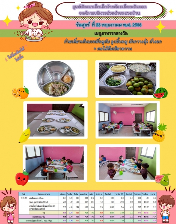รายการอาหารกลางวันของศูนย์พัฒนาเด็กเล็ก (23/5/68)
