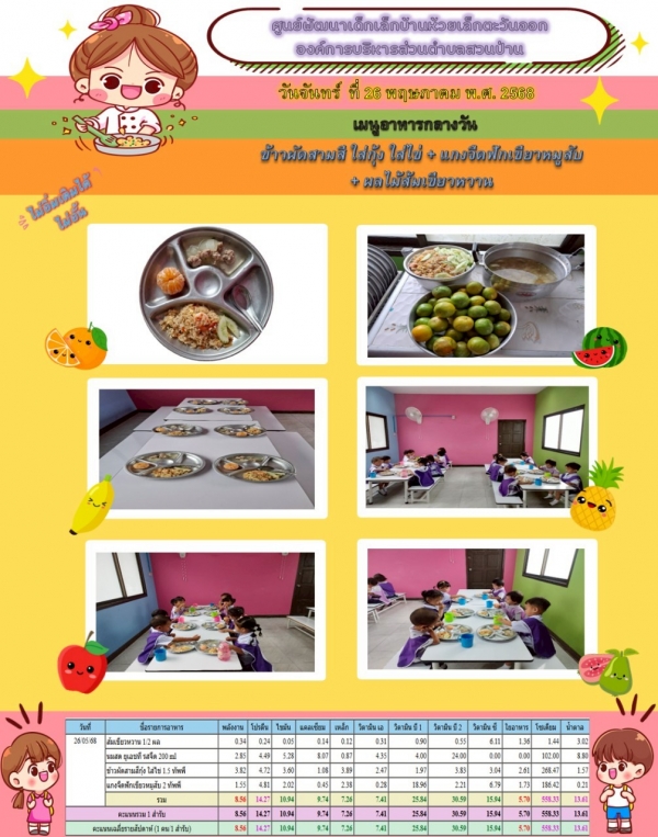 รายการอาหารกลางวันของศูนย์พัฒนาเด็กเล็ก (26/5/68)