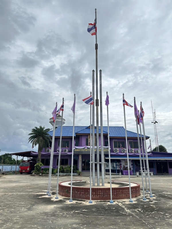 อบต.สวนป่าน จัดตั้งโต๊ะหมู่ประดิษฐาน พระบรมฉายาลักษณ์ผูกผ้า ผูกผ้าและประดับธง ปี 2568