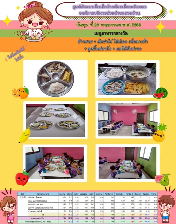 รายการอาหารกลางวันของศูนย์พัฒนาเด็กเล็ก (28/5/68)