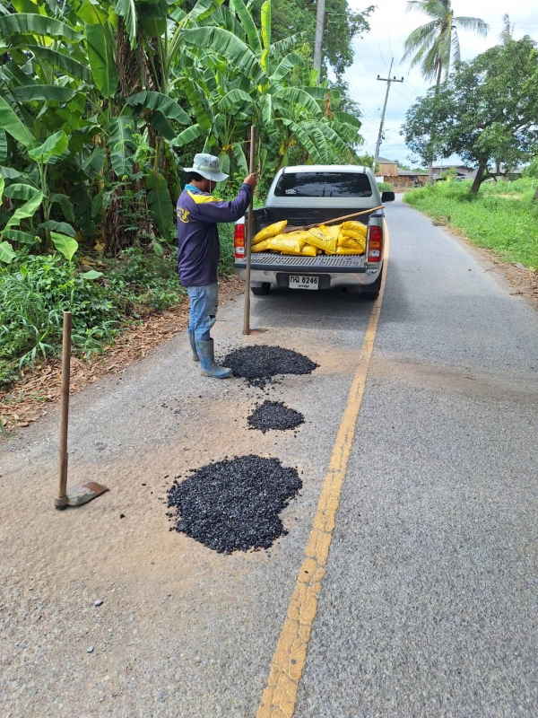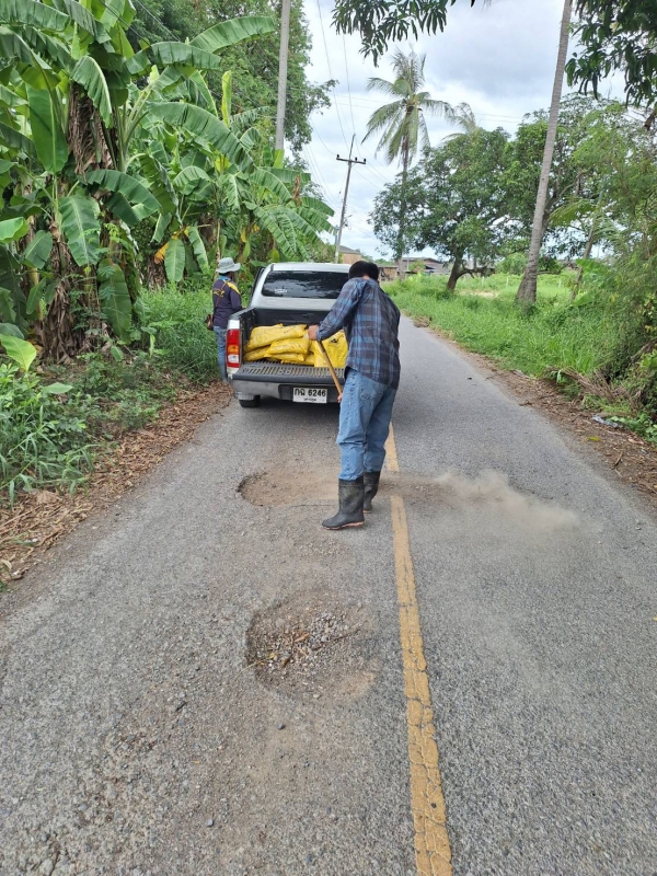 อบต.สวนป่าน ดำเนินการซ่อมแซมถนนโดยการปะยางมะตอย หมู่ที่ 4 (13/6/68)