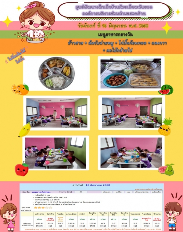 รายการอาหารกลางวันของศูนย์พัฒนาเด็กเล็ก (16/6/68)