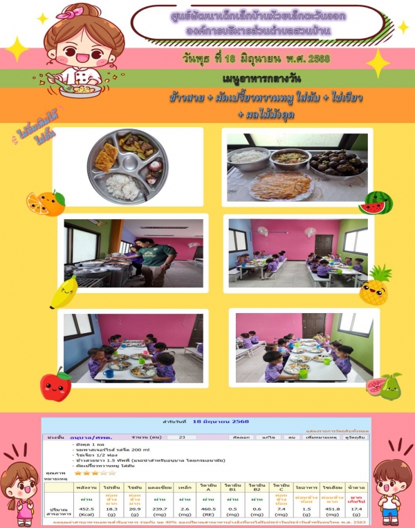 รายการอาหารกลางวันของศูนย์พัฒนาเด็กเล็ก (18/6/68)