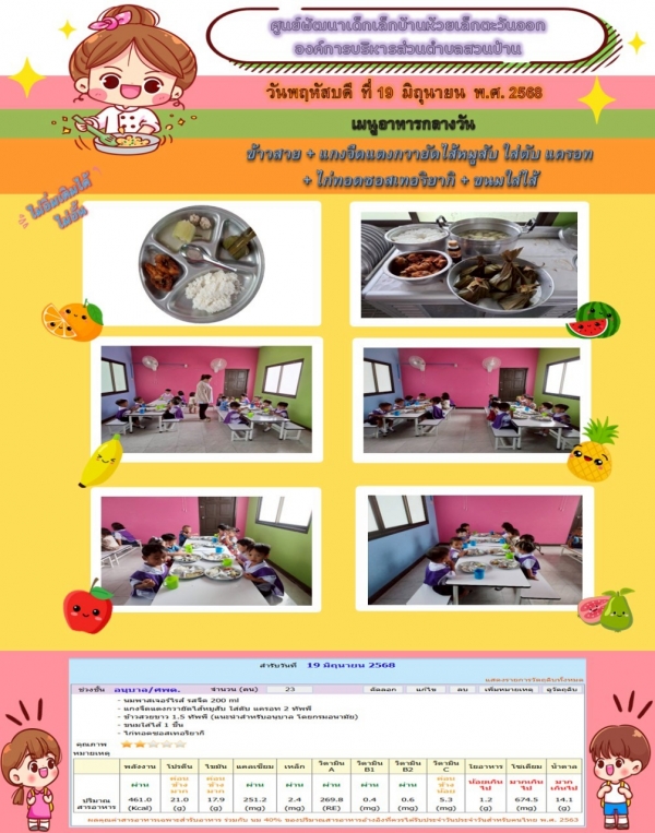 รายการอาหารกลางวันของศูนย์พัฒนาเด็กเล็ก (19/6/68)