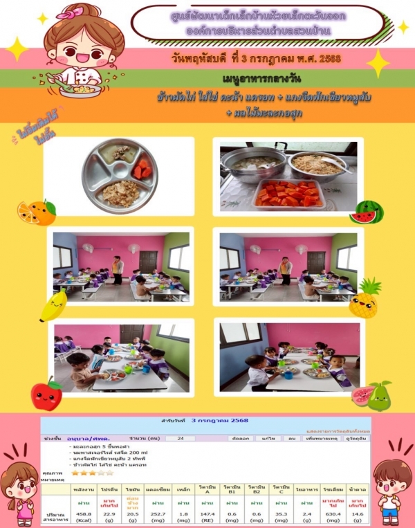 รายการอาหารกลางวันของศูนย์พัฒนาเด็กเล็ก 3/7/68