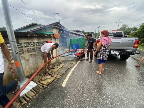 องค์การบริหารส่วนตำบลสวนป่าน ดำเนินการช่วยเหลือสูบน้ำเนื่องจากฝนตกสะสมหลายวัน รายนางสกุลนาม ระวังงาน หมู่ที่ 1 ตำบลสวนป่าน อำเภอเมืองนครปฐม จังหวัดนครปฐม