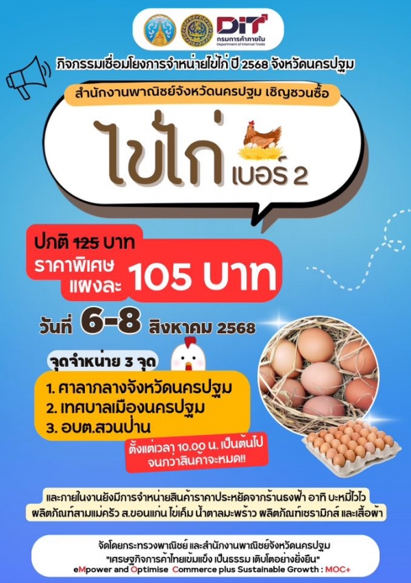 สำนักงานพาณิชย์ นฐ. ดำเนินกิจกรรมเชื่อมโยงการจำหน่ายไข่ไก่ ประจำปี 2568
