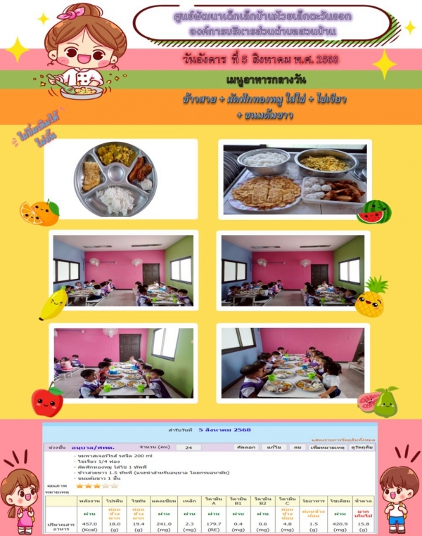 รายการอาหารกลางวันของศูนย์พัฒนาเด็กเล็ก (5/8/68)