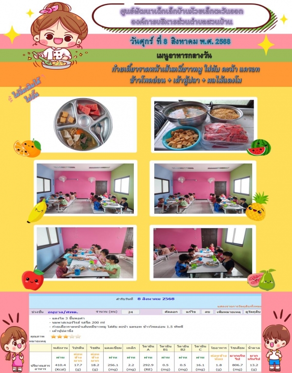 รายการอาหารกลางวันของศูนย์พัฒนาเด็กเล็ก (8/8/68)