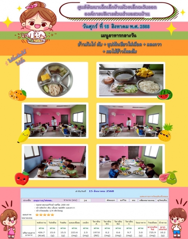 รายการอาหารกลางวันของศูนย์พัฒนาเด็กเล็ก (15/8/68)