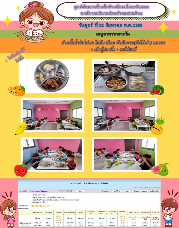 รายการอาหารกลางวันของศูนย์พัฒนาเด็กเล็ก (22/8/68)
