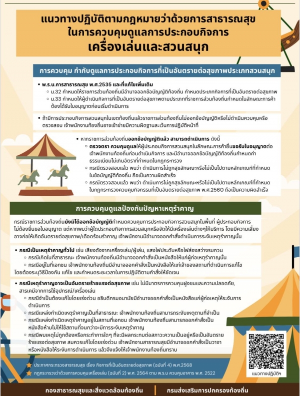 แจ้งประชาสัมพันธ์ การควบคุมกำกับดูแลการประกอบกิจการเครื่องเล่นและสวนสนุก