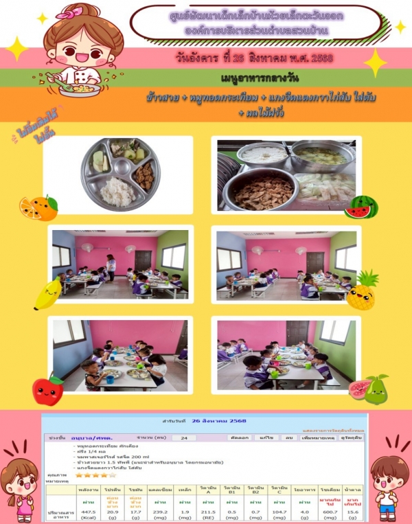 รายการอาหารกลางวันของศูนย์พัฒนาเด็กเล็ก 26/8/68
