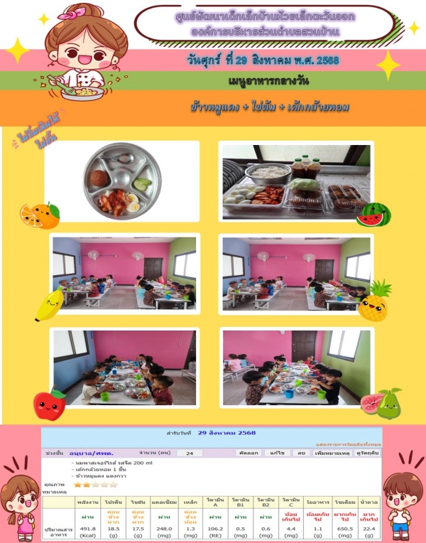 รายการอาหารกลางวันของศูนย์พัฒนาเด็กเล็ก (29/8/68)