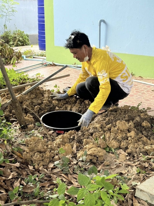 อบต.สวนป่าน ดำเนินการจัดทำถังขยะเปียกเพื่อใส่เศษอาหารของศูนย์พัฒนาเด็กเล็ก