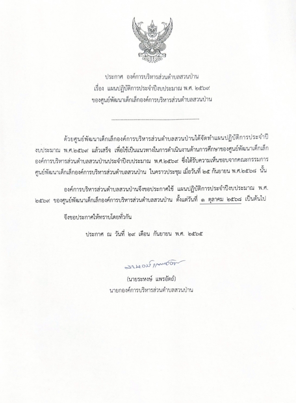 ประกาศ อบต.สวนป่าน เรื่อง แผนปฏิบัติการประจำปีงบประมาณ พ.ศ. 2569(ศูนย์พัฒนาเด็กเล็ก)