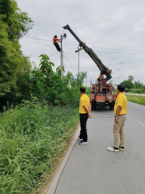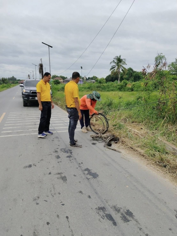 อบต.สวนป่าน ตรวจดูปักเสาไฟฟ้าและสายไฟ กรณีรถพ่วง 10 ล้อ เฉี่ยวชน หมู่ที่ 5 (26/9/68)