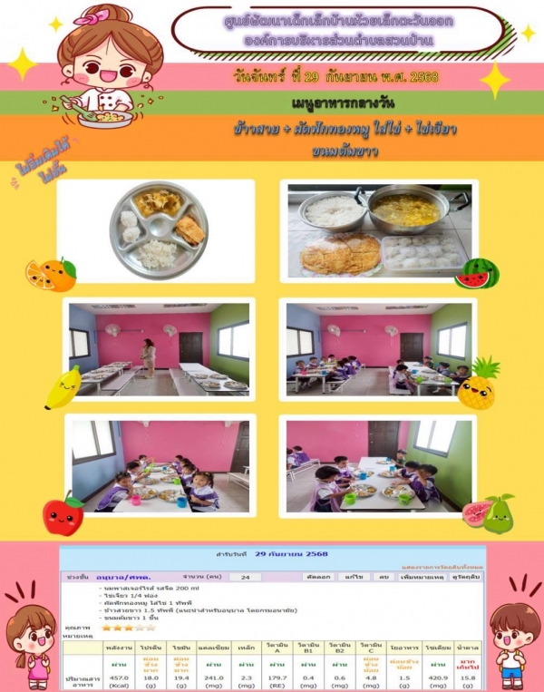 รายการอาหารกลางวันของศูนย์พัฒนาเด็กเล็ก 29/9/68