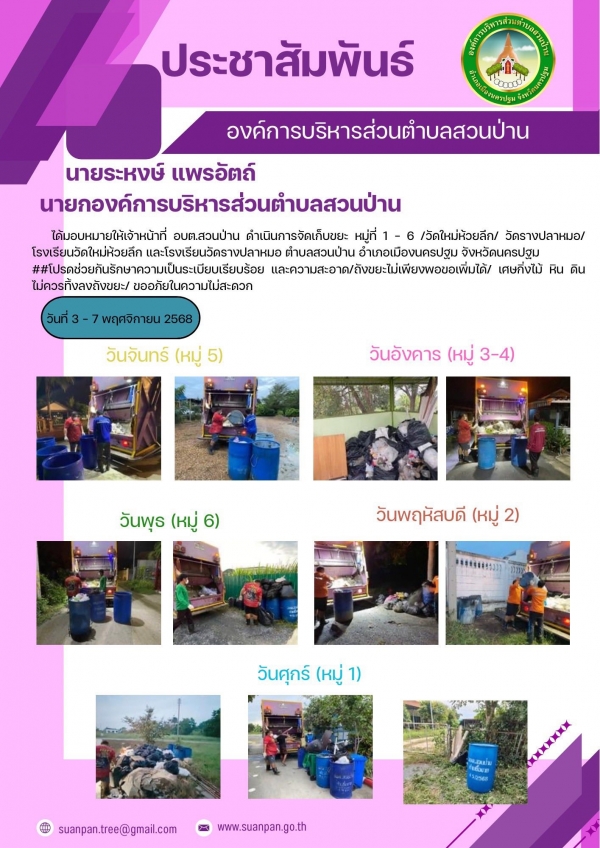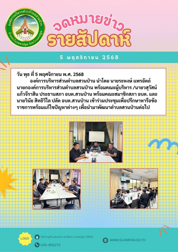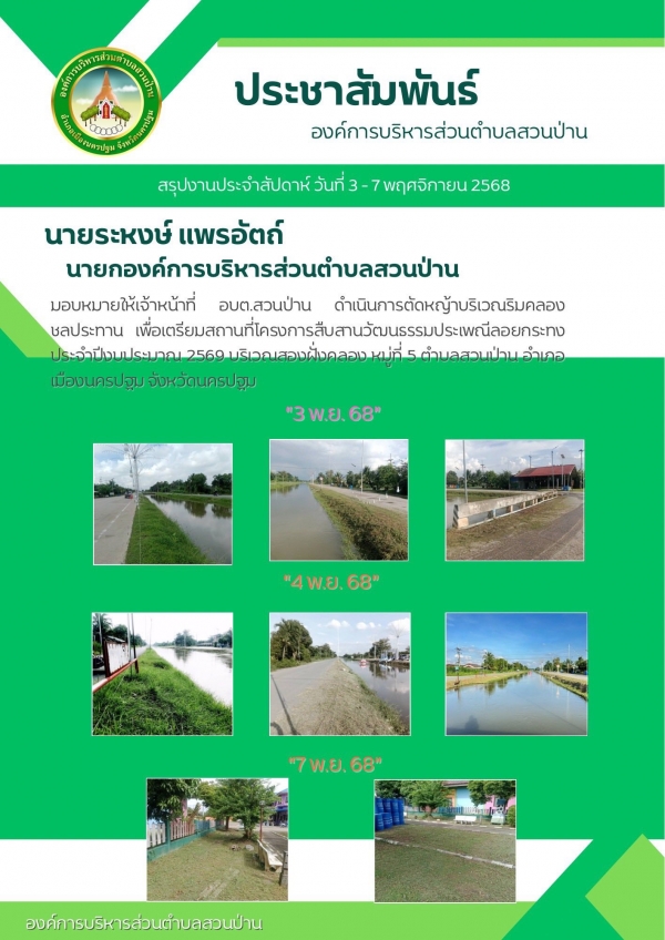สรุปงานประจำสัปดาห์ ระหว่างวันที่ 3 - 7 พฤศจิกายน 2568