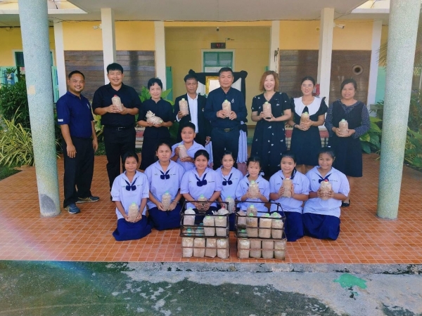อบต.สวนป่าน ร่วมกิจกรรมกับ โรงเรียนสระกะเทียมวิทยาคม ส่งมอบเชื้อเห็ดให้กับ โรงเรียนในพื้นที่