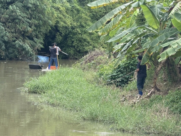 อบต.สวนป่าน ดำเนินการจัดเก็บซากปลาที่ลอยตายในคลองท่าผา-บางแก้ว บริเวณ หมู่ที่ 2 ต่อหมู่ที่ 1