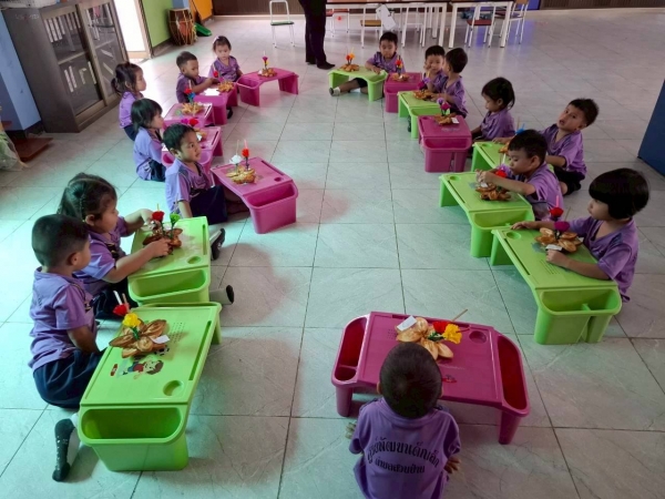 ศูนย์พัฒนาเด็กเล็กตำบลสวนป่าน ทำกิจกรรมประดิษฐ์กระทงขนมปัง เพื่อร่วมสืบสานประเพณีไทย