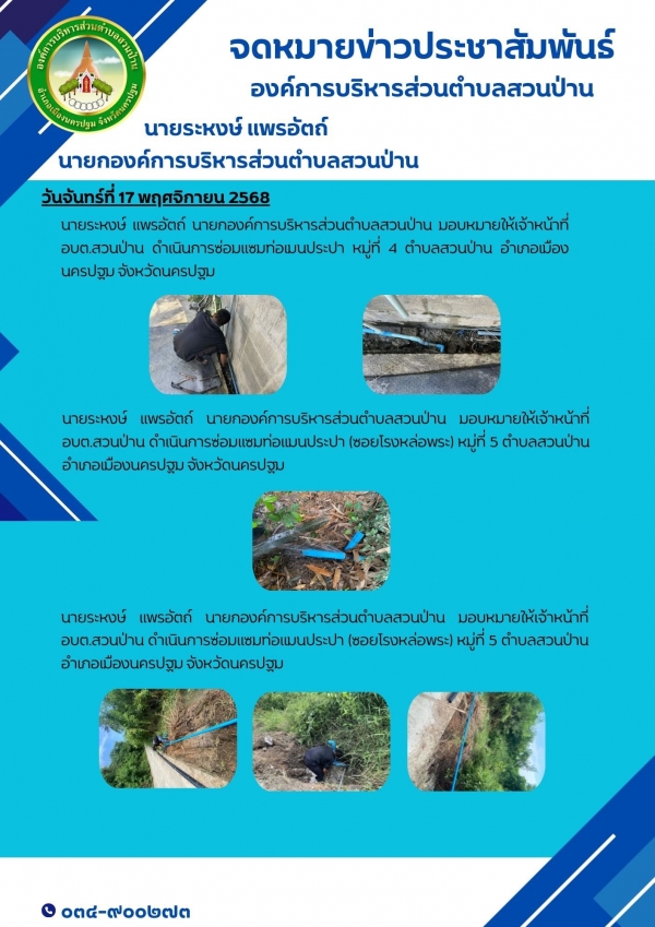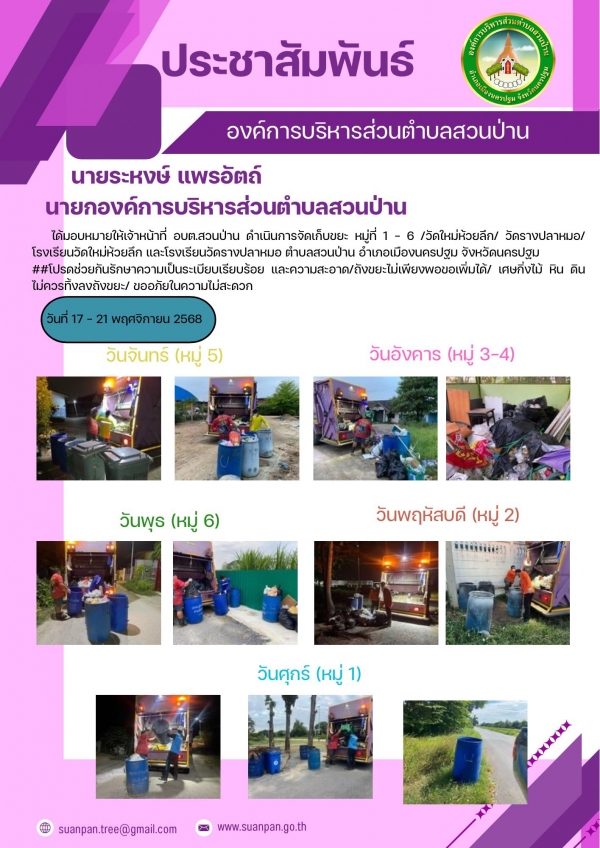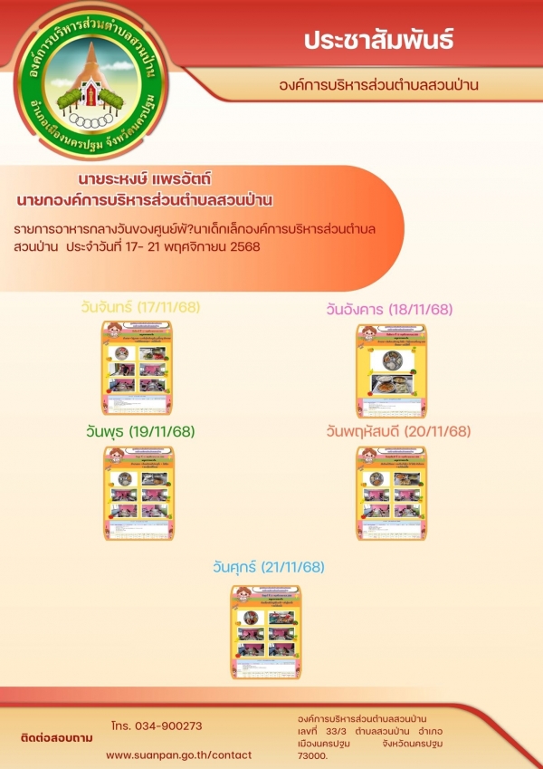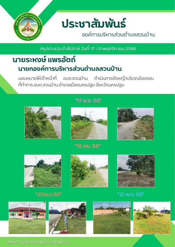 สรุปงานประจำสัปดาห์ ระหว่างวันที่ 17 - 21 พฤศจิกายน 2568