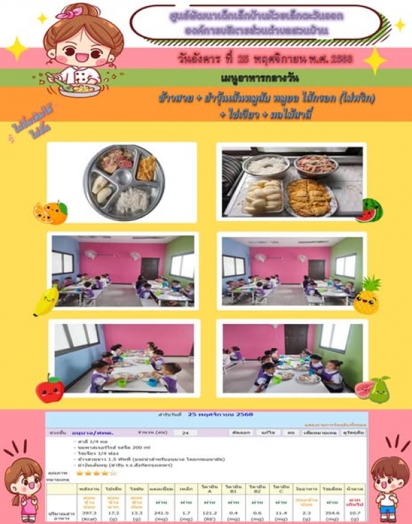 รายการอาหารกลางวันของศูนย์พัฒนาเด็กเล็ก 25/11/68