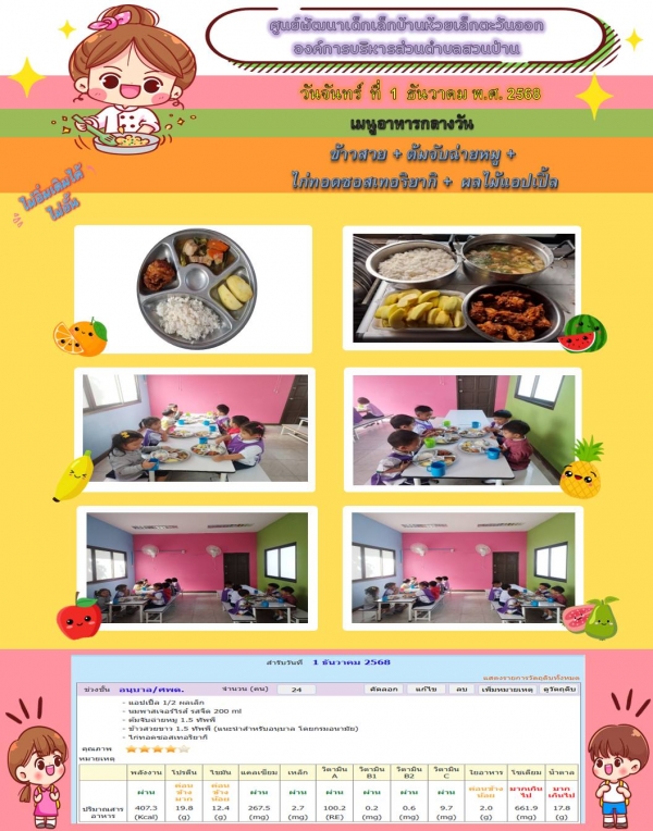 รายการอาหารกลางวันของศูนย์พัฒนาเด็กเล็ก (1/12/68)