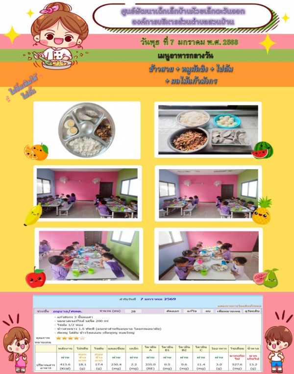 รายการอาหารกลางวันของศูนย์พัฒนาเด็กเล็ก 7/1/69