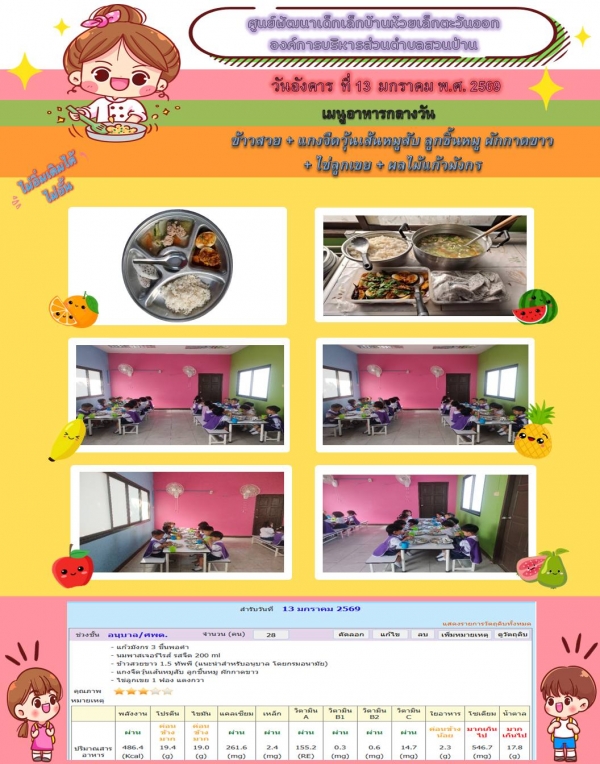 รายการอาหารกลางวันของศูนย์พัฒนาเด็กเล็ก 13/1/69