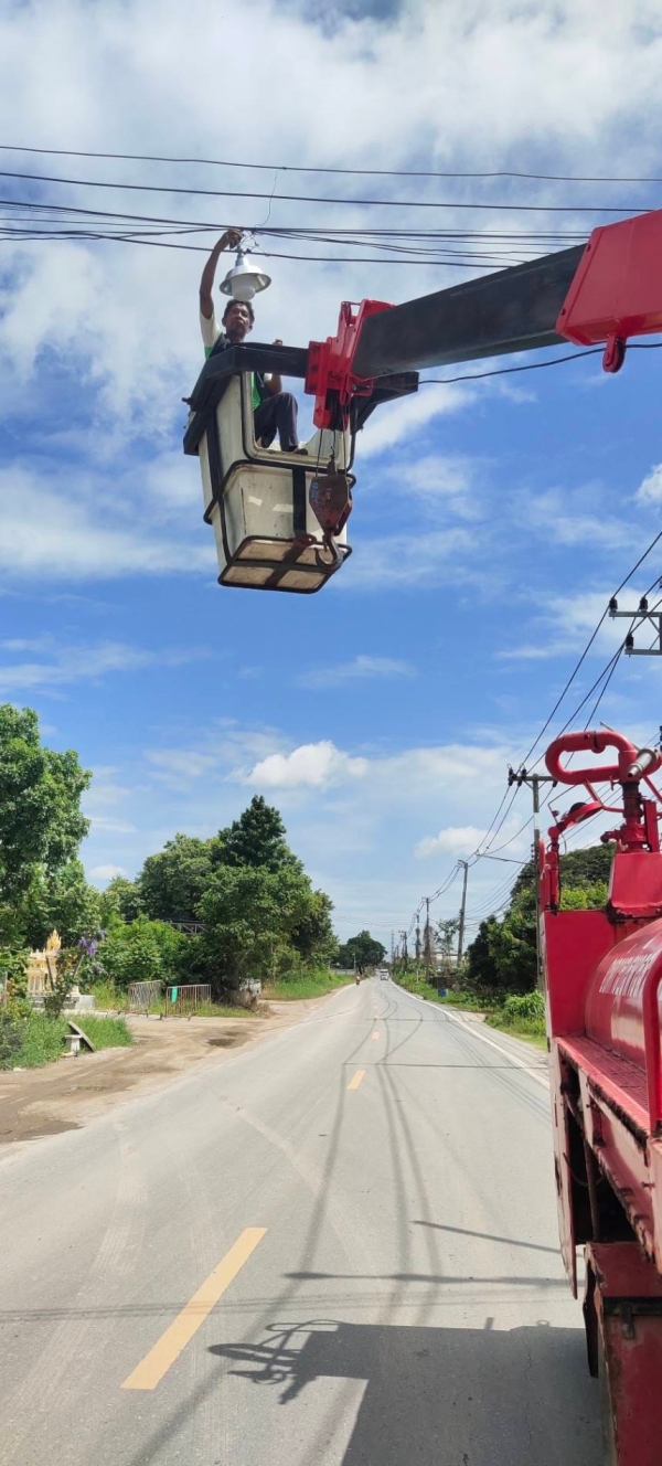 อบต.สวนป่าน ดำเนินการเปลี่ยนจากไฟฟ้าสาธารณะเป็นโคมไฟLED หมู่ที่ 2